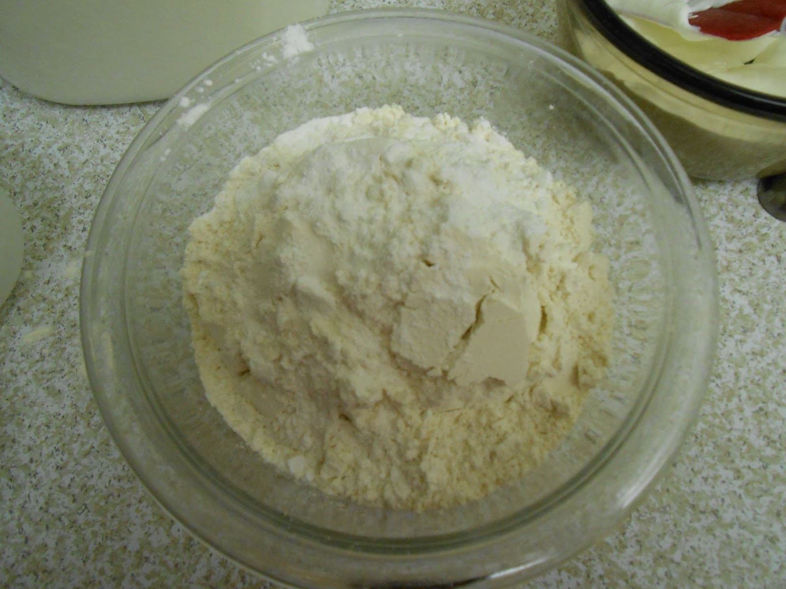 In yet another bowl (oh the dishes this recipe creates :/ ), combine the flour, baking powder and salt.